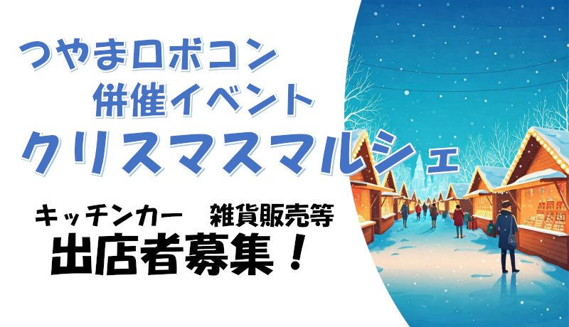 2025年12月14日の2日間に開催される「つやまロボコン併催イベント クリスマスマルシェ」へのキッチンカーの出店依頼を頂きましたので、以下の条件で出店を募集致します。ご興味ある方は、お問い合わせください。